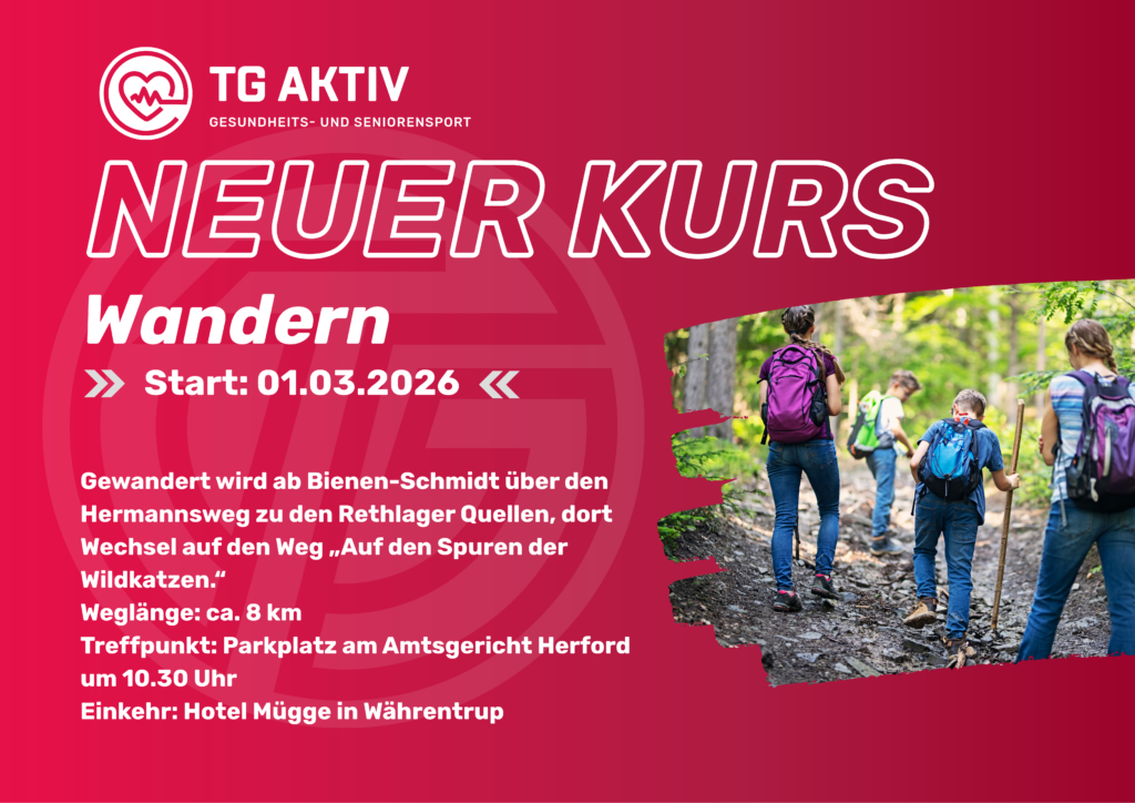 Die Turngemeinde Herford wandert: Wanderung der TG Herford-Wanderfreunde am Sonntag, den 01.03.2026. Gewandert wird ab Bienen-Schmidt über den Hermannsweg zu