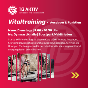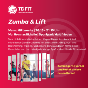 TG AKTIV Vitaltraining – Ausdauer und Funktion & Zumba und Lift Ab 14.04.2026 bei TG Fit und TG Aktiv: Vitaltraining – Weiterlesen »